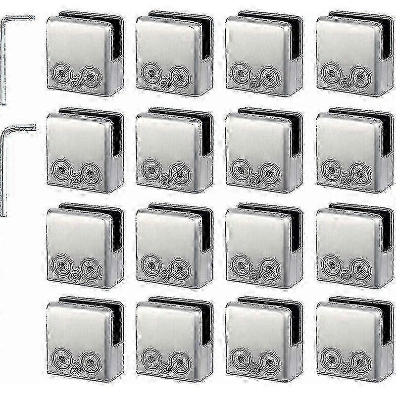 ,16 Pack 304 Stainless Steel Glass Clamps -Square Glass Clamp -Adjustable Flat Glass Clamp for Stair Balustrade -Polished Handrail - (