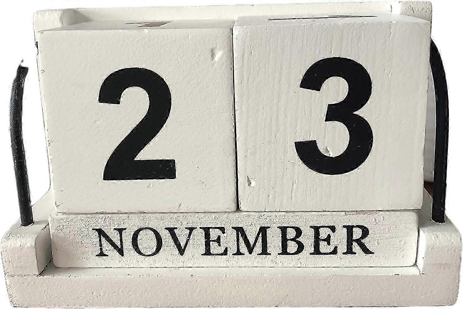 Stay Organized with Wooden Block Calendar - Vintage Perpetual Blocks for Home and Office Decoration