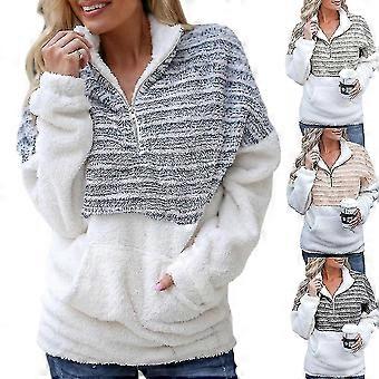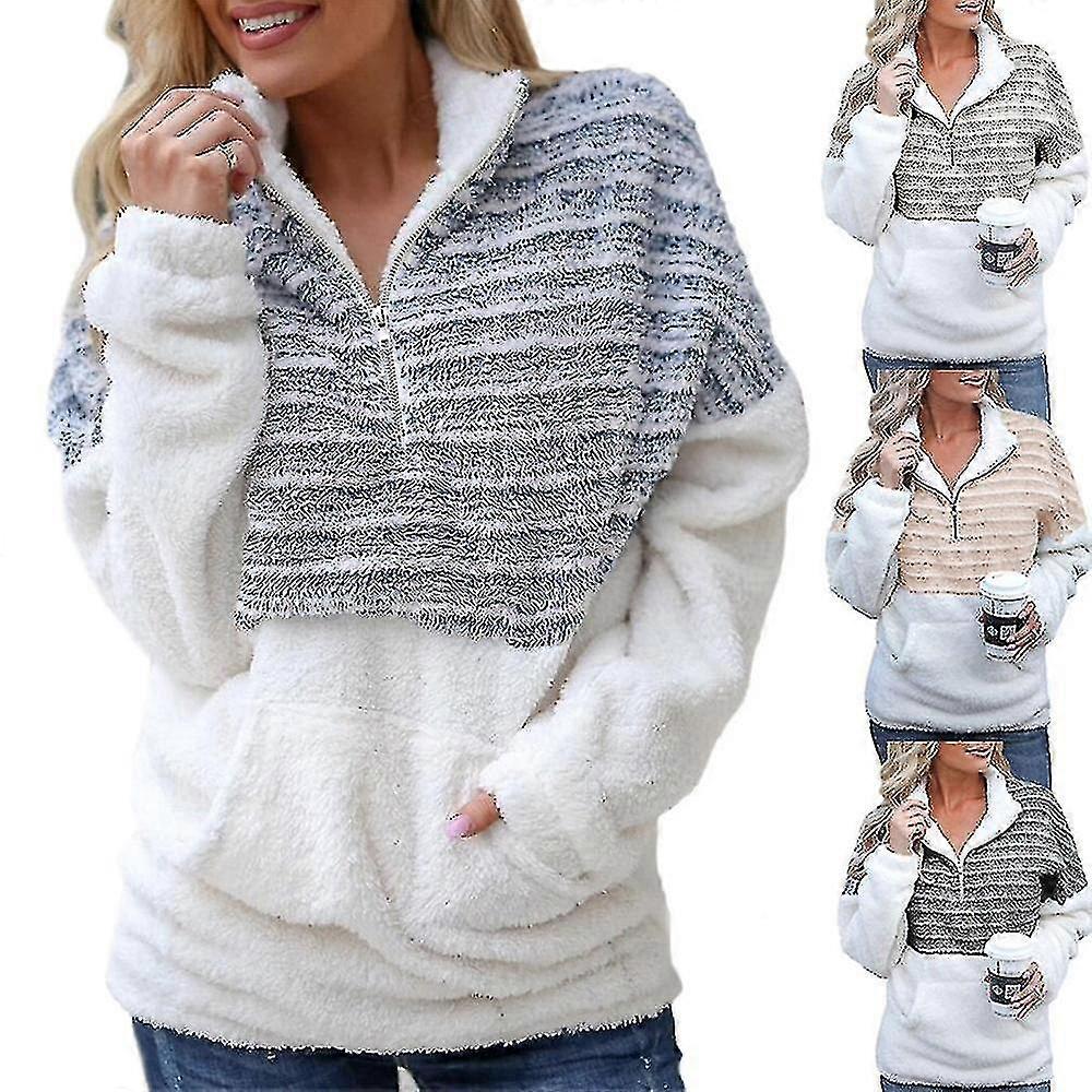 New Trend Women's Long Sleeve Zipper Sherpa Pile Pullover Tops Fleece Sweatshirt,Gg