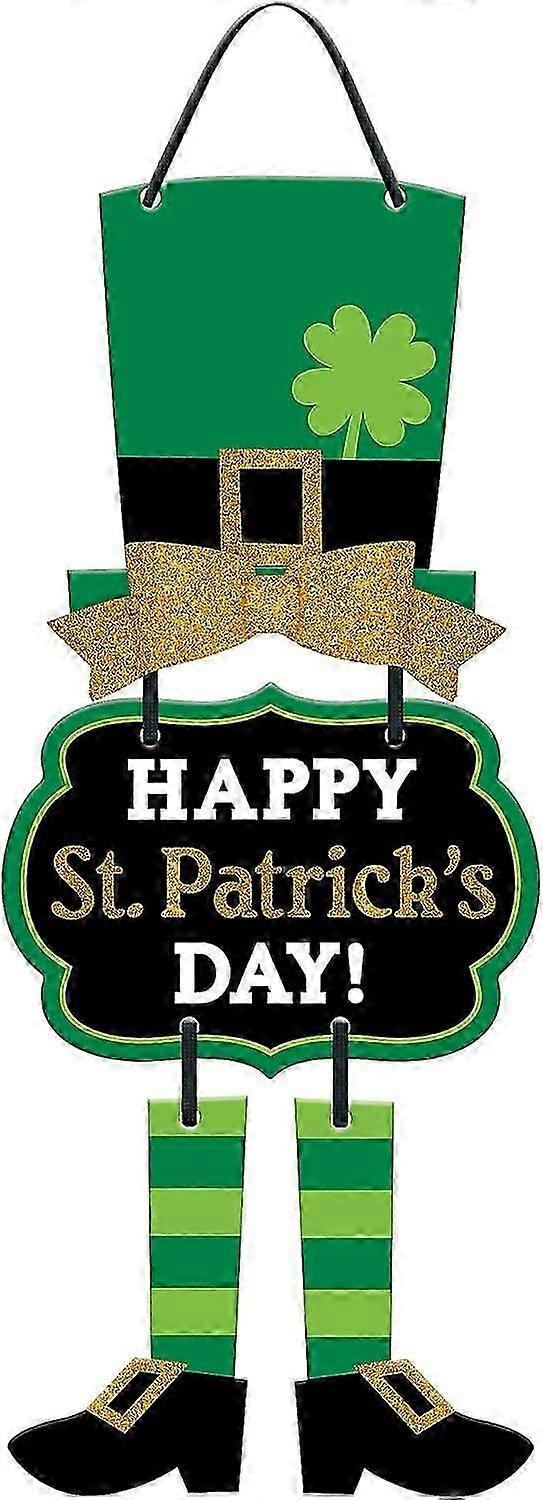 Festive Multicolor St. Patrick's Day Leprechaun Triple Sign - 19"x 8.5"(1 Pc.) - MDF Wall Decor with Glitter, Bow & Ribbon Hanger - Perfect Irish Cele