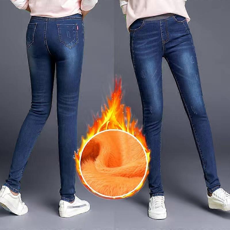 High Waist Skinny Pencil Jeans Mom Fall Winter Thicken Warm Denim Pants Casual Velvet Lined Vaqueros Big Size 38 Stretch Trouser
