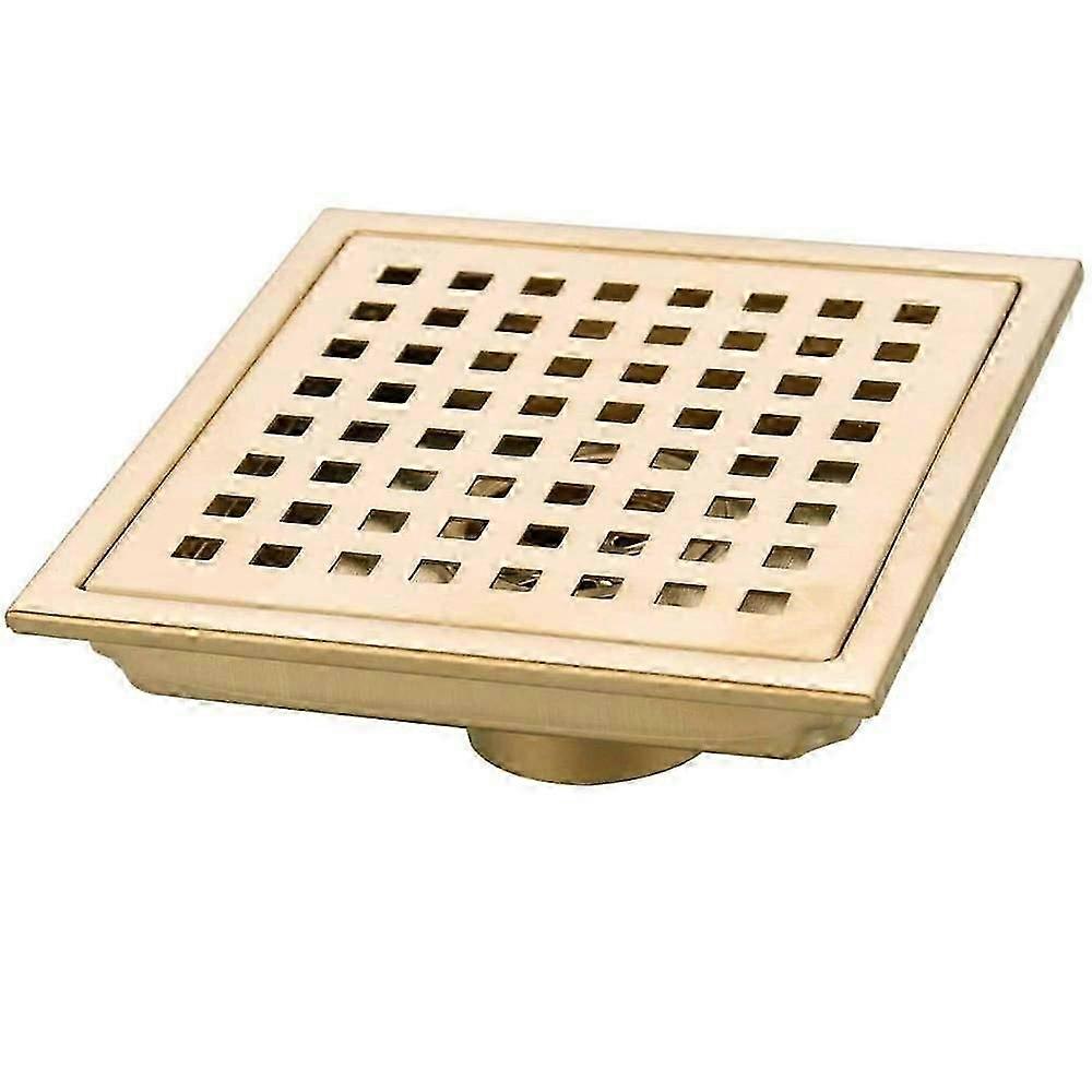 Brushed Gold Square Shower Floor Drain, 304 Stainless Steel for Bathroom Kitchen Waste Grate Large Flow Drainer 150MM