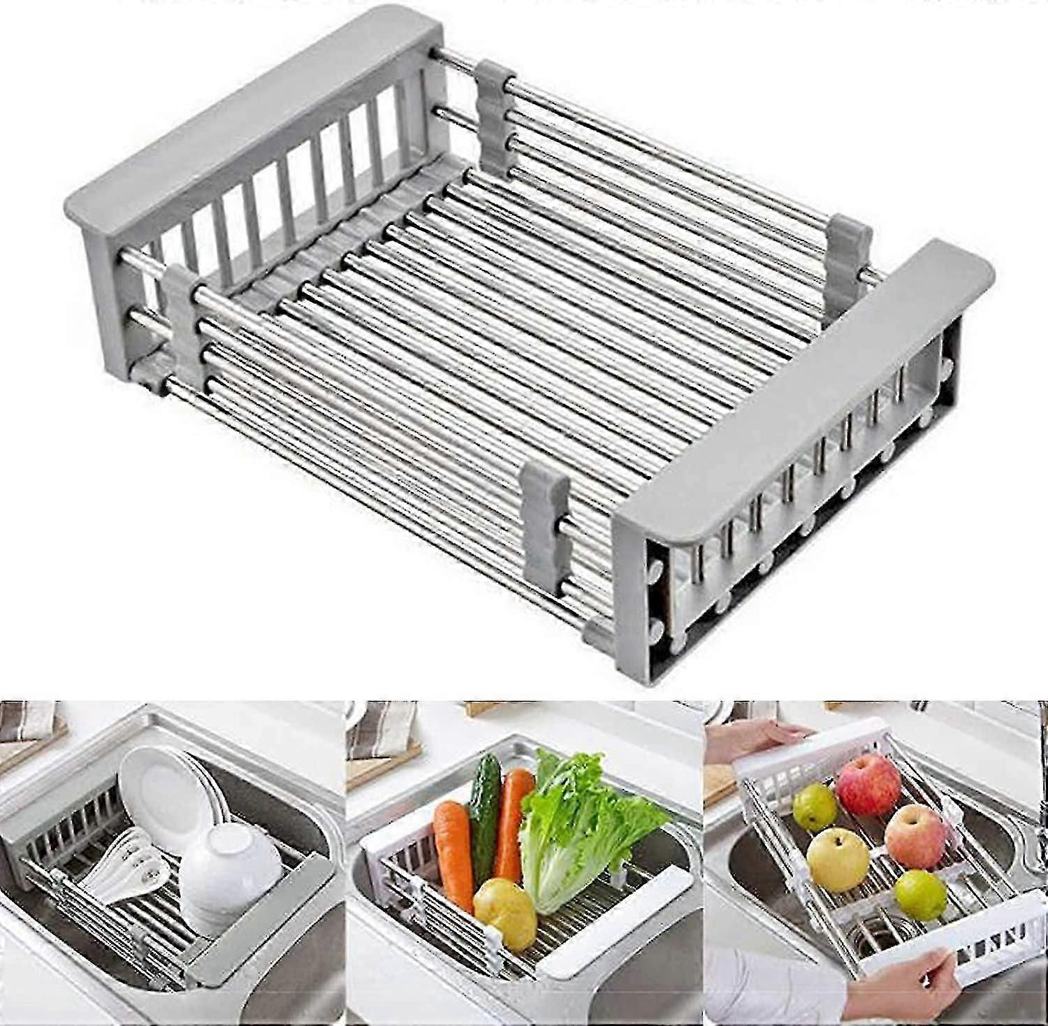 Retractable Stainless Steel Sink Strainer Drain,telescopic Drain Basket With Adjustable Armrest, Kitchen Ra Drain Basket, Over The Sink Dish Drying,00