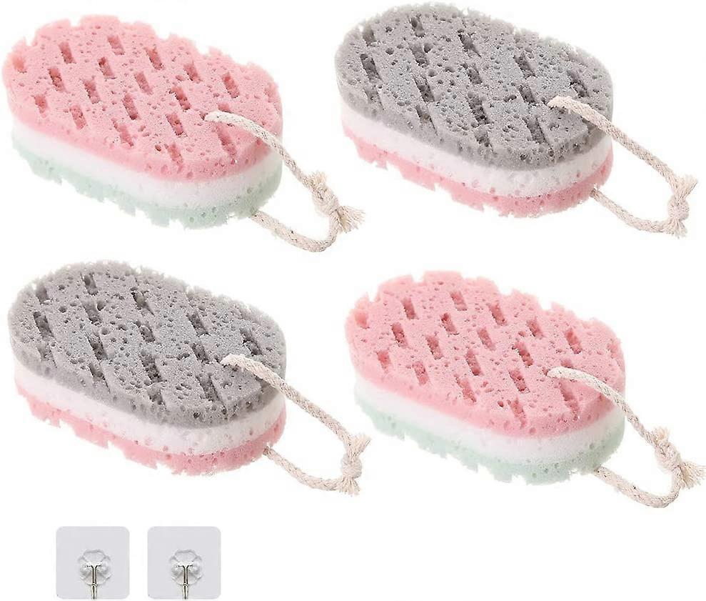 Bath Sponge for Adult, Soft Bath Massage Sponge with 2 Hooks Body Exfoliator Sponge for Women (4 Pieces)