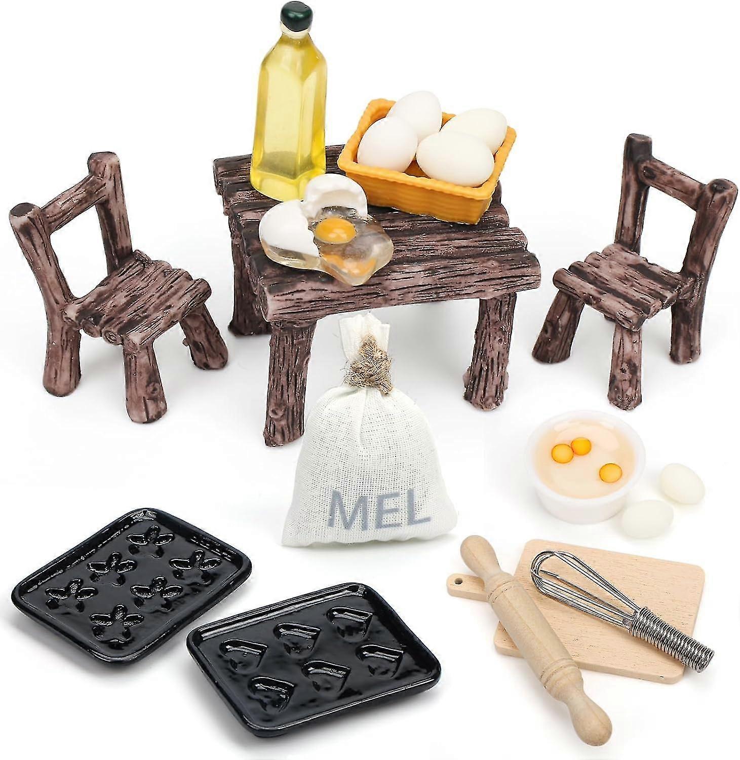 Miniature Gnome Accessories, Mini Dollhouse Accessories, Gnome Table And Chairs, Baking Set Gnome Accessories, Dollhouse Decor Gift For Kids