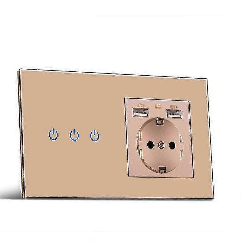 EU Standard Gauge Tempered Glass 90V-250V Wall 10A Light Panel 16A Electrical Socket Concealed Household Touch Switch Socket