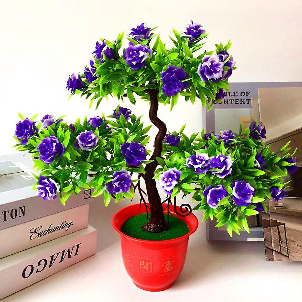 Artificial Rose Flower Guest Greeting Pine Plant Pot Home Desktop Office Decor
