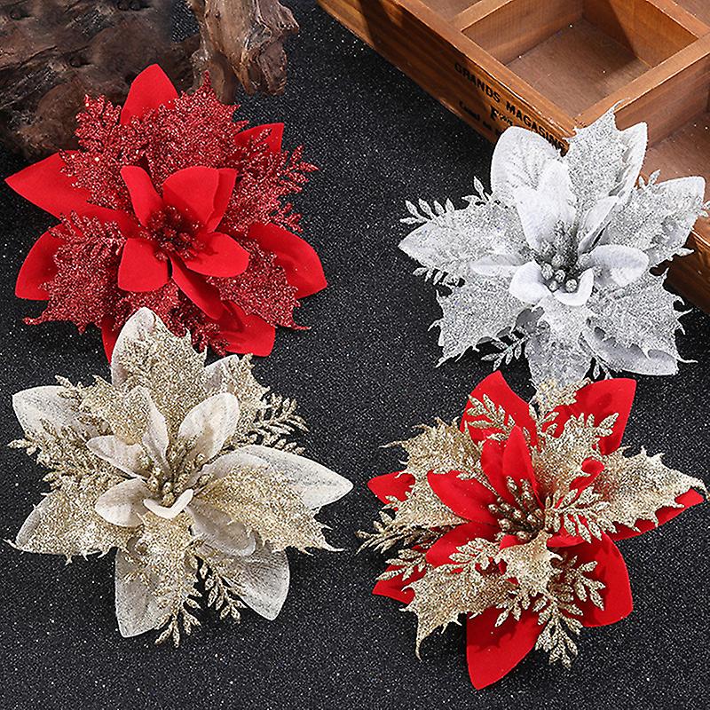 Artificial Christmas Flowers Glitter Fake Flowers Merry Christmas Tree Decor