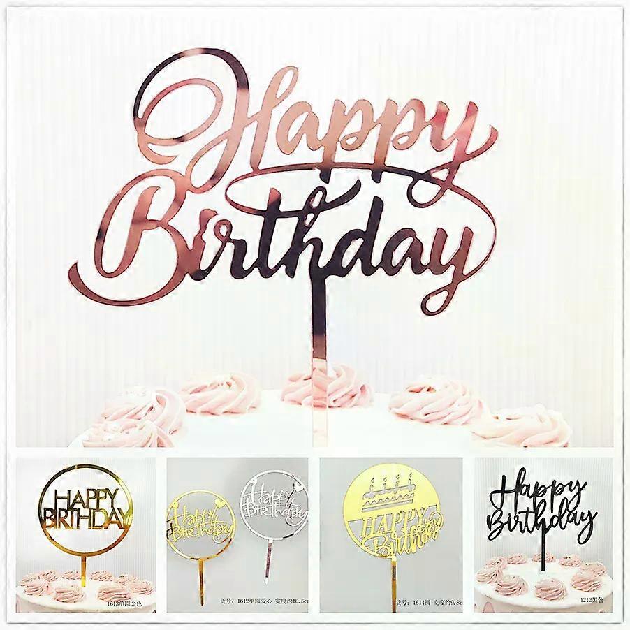 Acrylic Birthday Cake Topper Rose Gold Happy Birthday Dessert Cake Decoration For Baby Shower Party Cake Toppers Baking Supplies