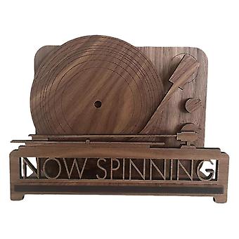 Now Spinning Album Stand Multifunctional Music Album Collection Bracket for Children,Brown