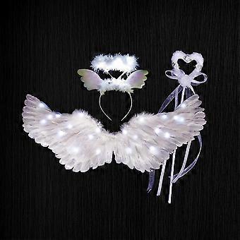 الأبيض الملاك الأميرة أجنحة زي مجموعة، تضيء أجنحة الملاك والهالات مع عصا سحرية وأورانجل أجنحة زي مجموعة للوازم حزب الاطفال الكبار