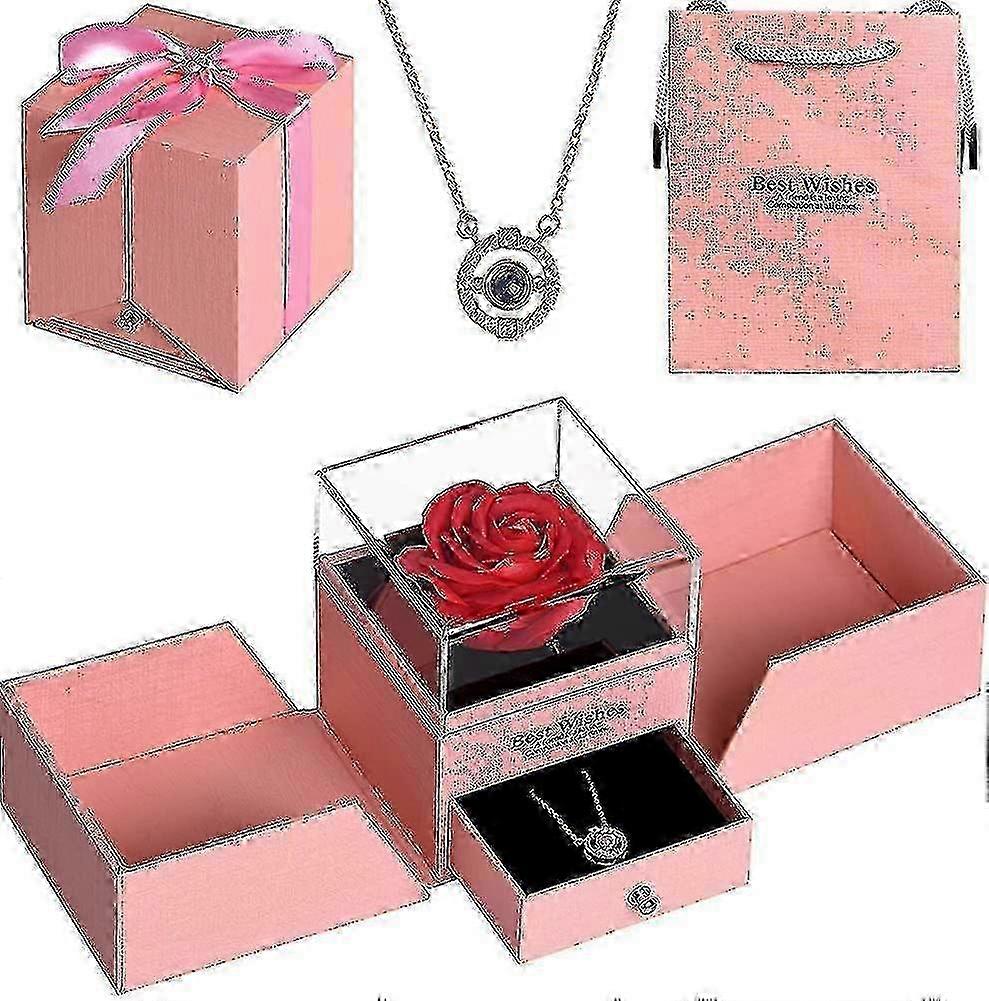 Red Rose Jewelry Gift Box For Women, Eternal Rose Gifts Box With I Love You