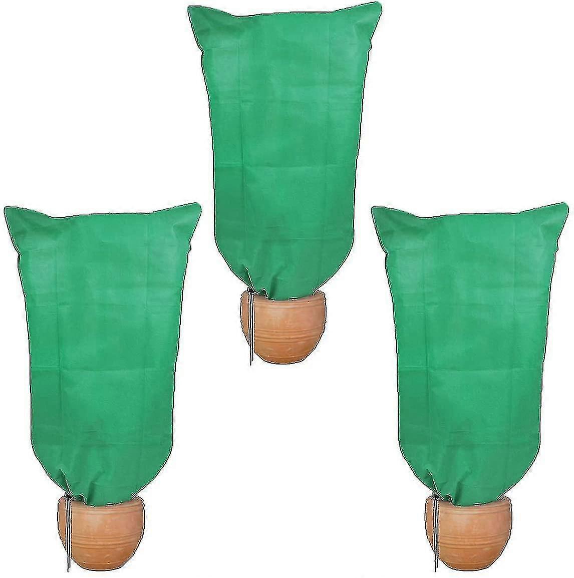 Green Drawstring Plant Protection Bag Frostproof Jacket For Shrub Tree Greenhouse Plants (3 Pieces)