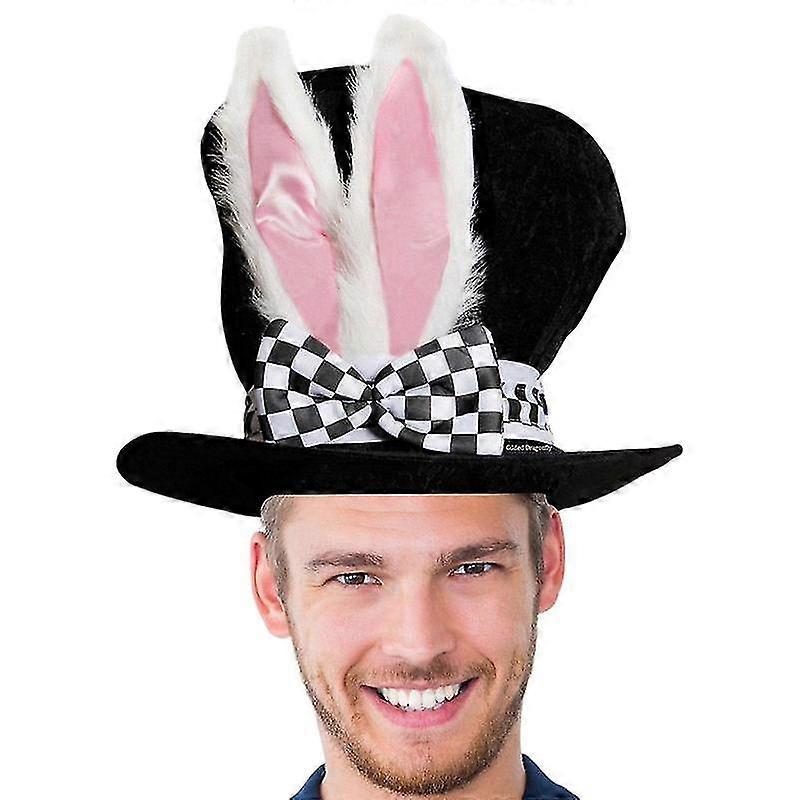 Bunny Ears Hat Mad Hatter Costume Velvet Easter Rabbit Top White Black Plush For Halloween Party