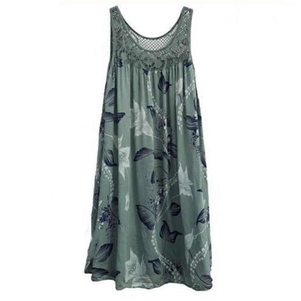 Floral Printed Lace Stitching O-neck Sleeveless Women Loose Tank