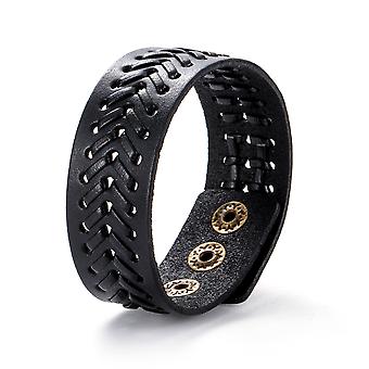 Black And Brown Men's Braided Leather Bracelets Armband Cross Grain With Button Hip Hop Bracelet For Man Motorcycle Rider Gifts