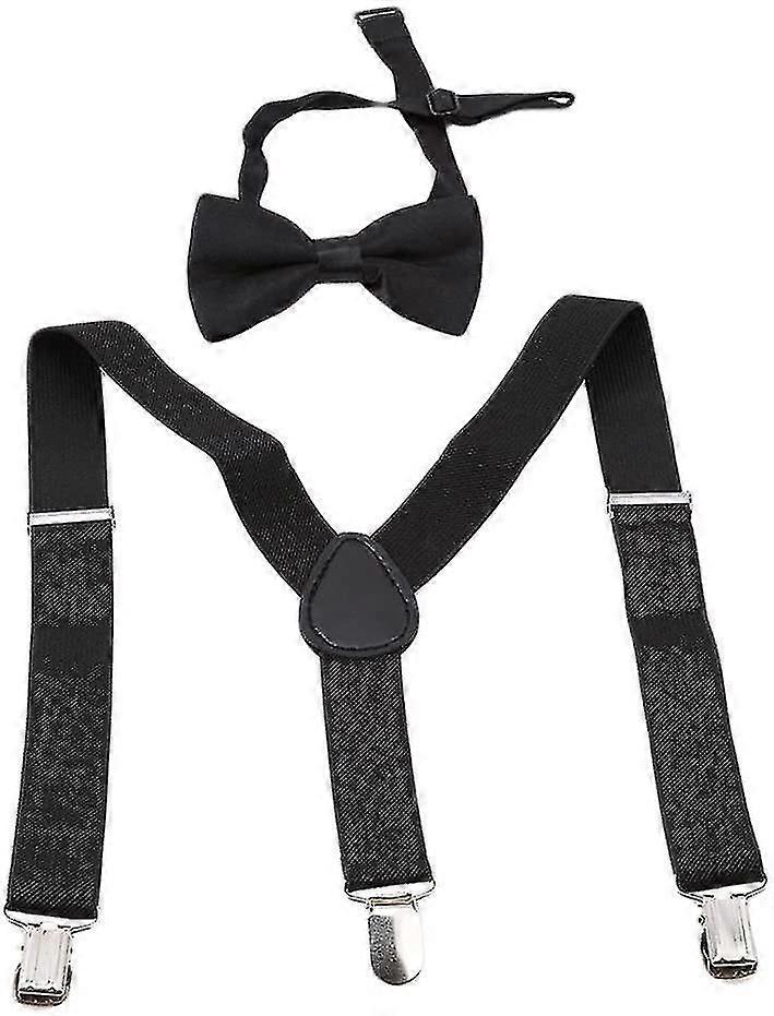 Children Boys Girls Suspenders Elastic Adjustable Braces Clip-on With Bow Tie Set