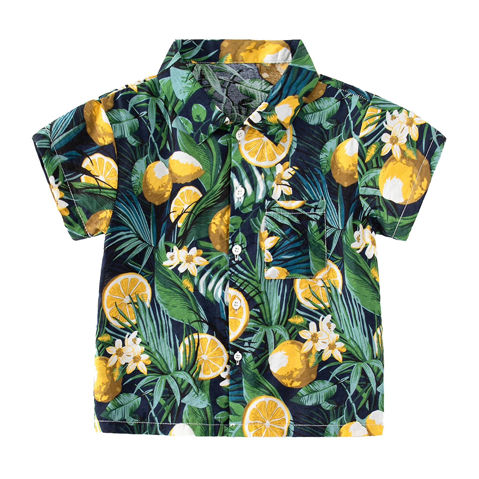 Children Boys Summer Casual Shirt Short Sleeve Turn-down Collar Tropical Hawaiian Style Print Tops Seaside Holiday Daily Wear