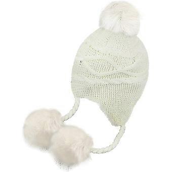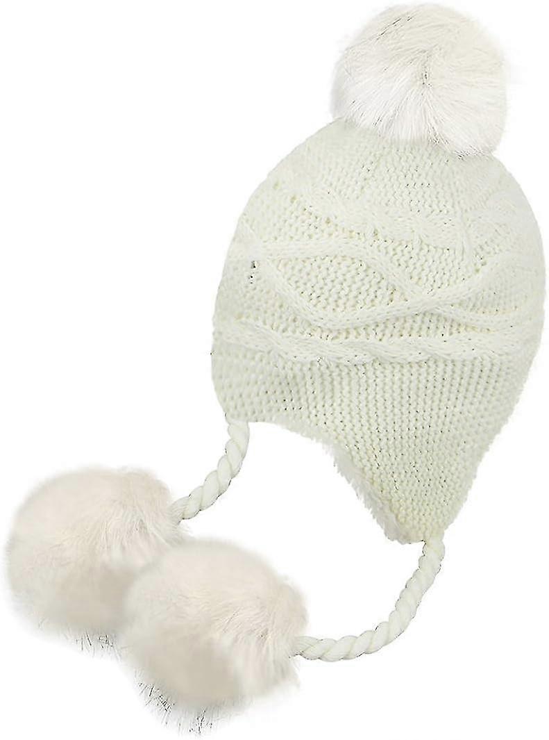 Kids Toddlers Warm Beanie Hat Winter Knitted Fleece Hats with Ear Flap, Cute Pom Pom Design