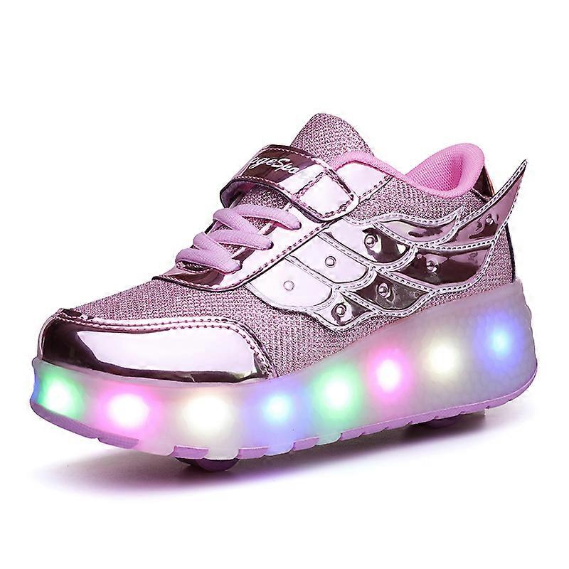 Children One Two Wheels Luminous Glowing Sneakers Gold Pink Led Light Roller Skate Shoes Kids Led Shoes Boys Girls USB Charging