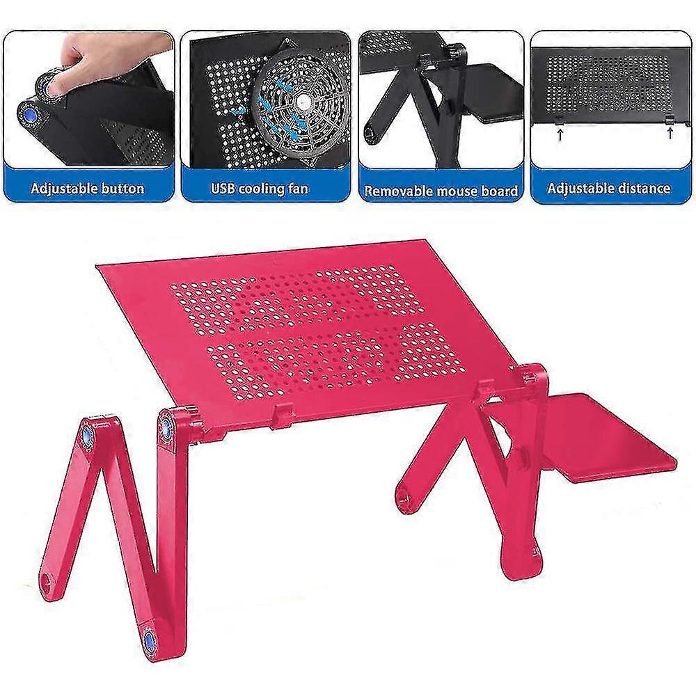 Aluminum Laptop Stand Adjustable With Cooling Fan And Mouse Pad, Reinforced Ergonomic Lap Desk Foldable Portable Computer Table For Bed Sofa Couch Off