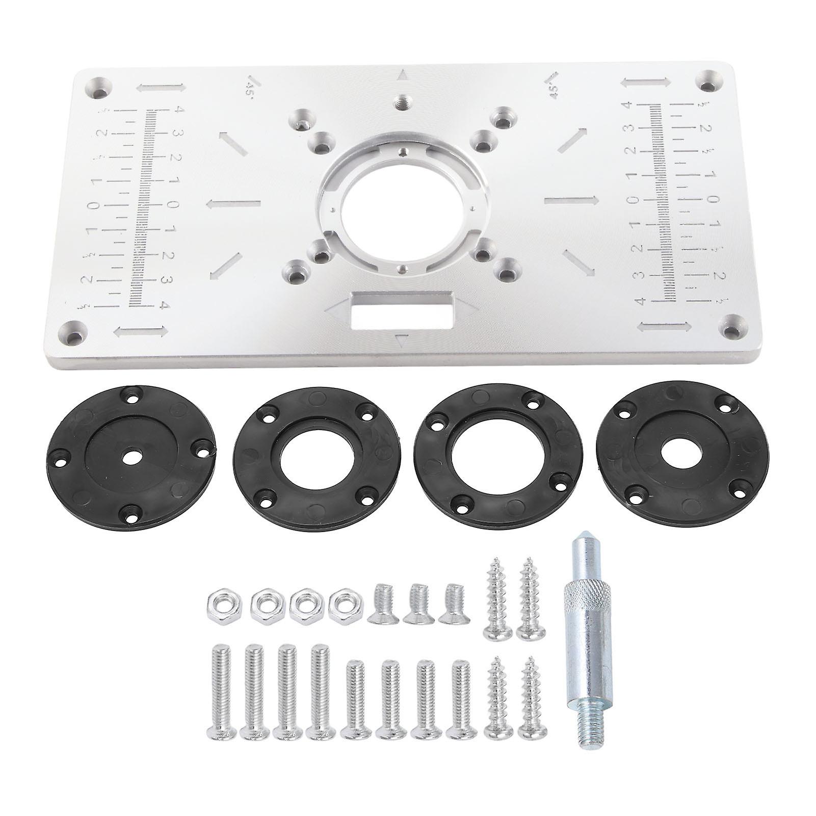Aluminium Router Table Insert Plate for Woodworking Benches Milling Trimming Machine 8 Holes with Rings