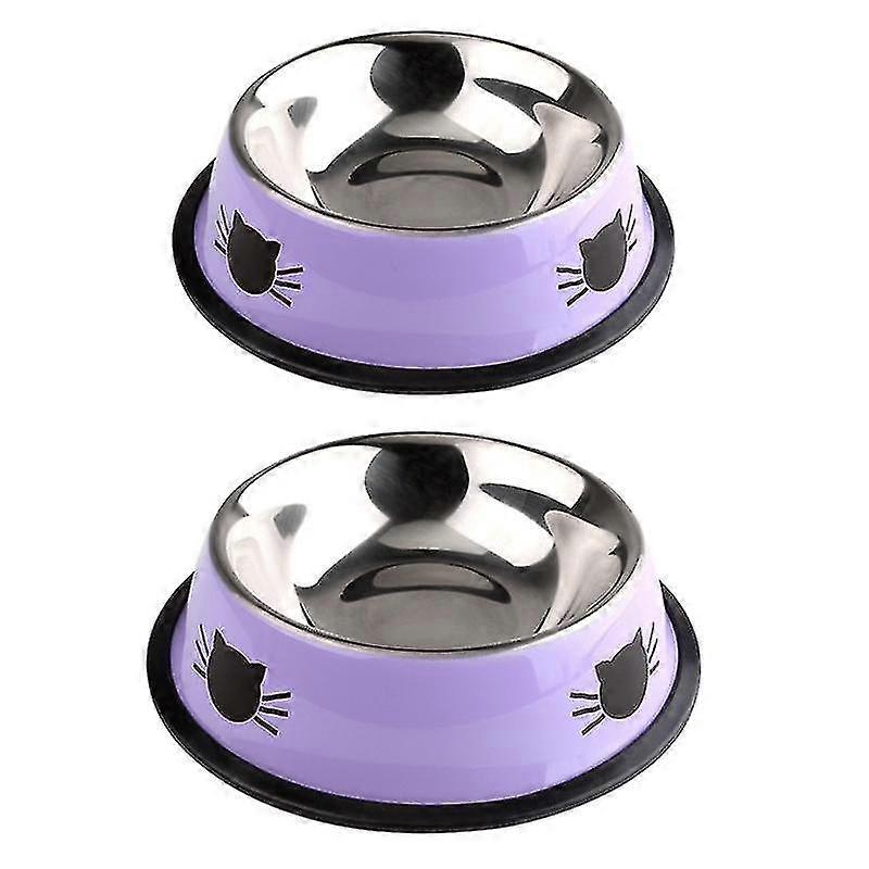 Pet Dry Or Wet Food Dish Feeder With Cute Pattern For Small Kitten Bowlspurple2pcs GuanGuan