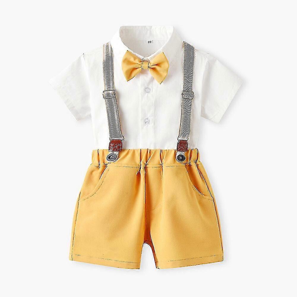 Baby Boys Formal Suit Gentleman Bowtie Romper Suspenders Shorts Wedding Tuxedo Outfit