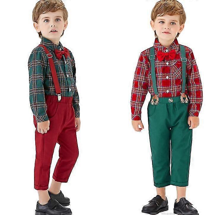 Boys Christmas Gentleman Plaid Outfits Suit, Shirt Bowtie Pants Set