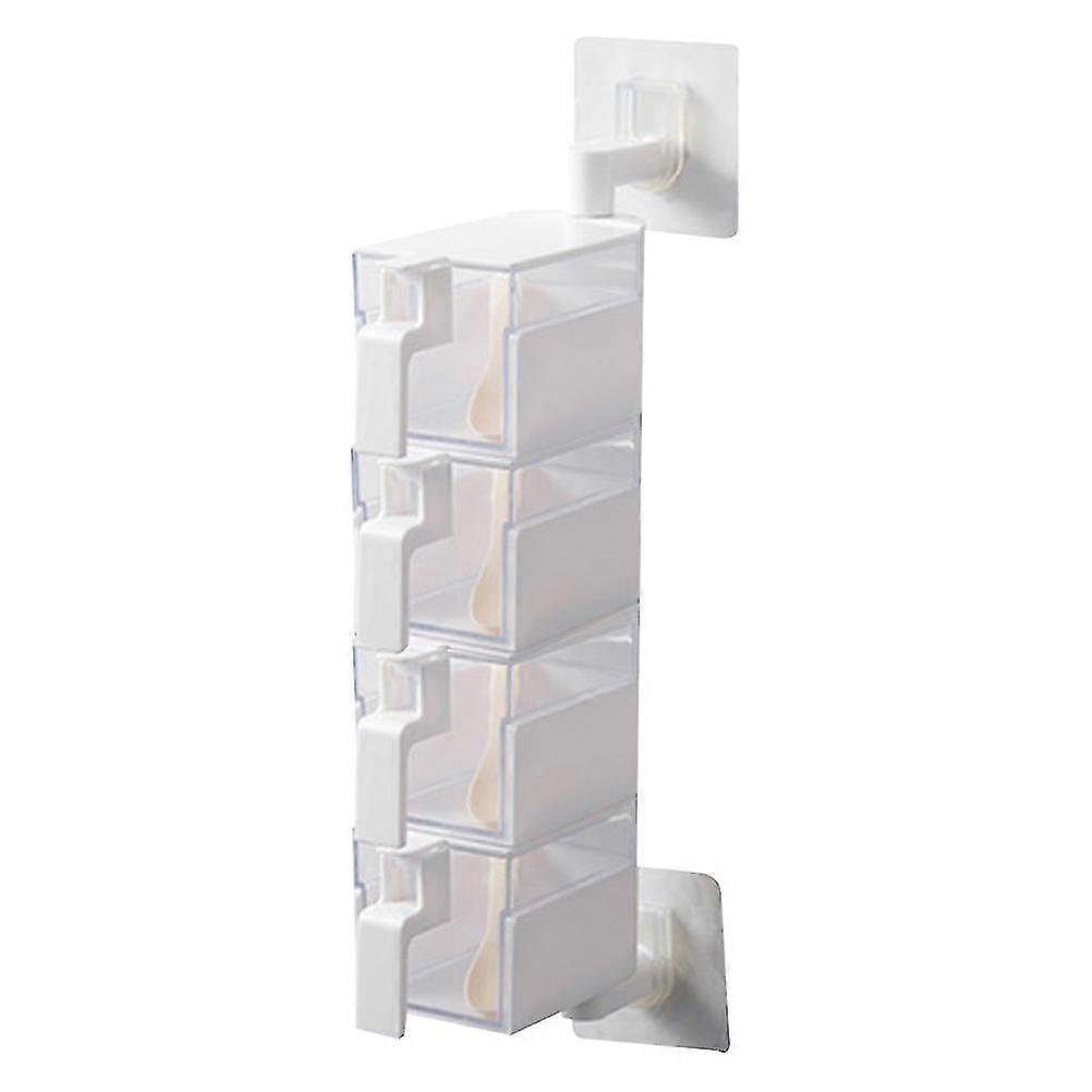 Creative Vertical Seasoning Box Wall-mounted 4 Layers Rotatable Spice Storage Container Kitchen Flavors Condiments Storage Organizer With Spoons (whit