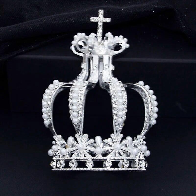 Baroque Bridal Jewelry Rhinestone Pearls Cross Crown for Party Cake Flowers Tiaras Decoration Birthday Diadem Ornaments