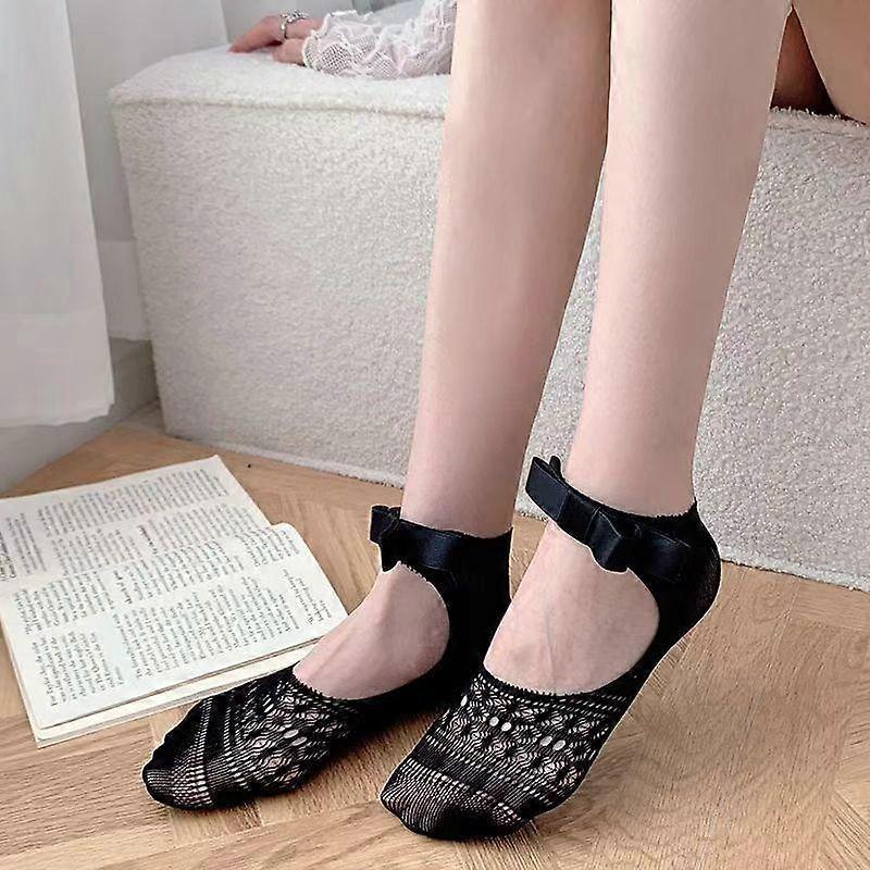 Ballet Style Woman Summer Hollow Lace Bowknot Lolita Solid Color Socks Thin Casual Sweet Girls Invisible Lace Boat Socks