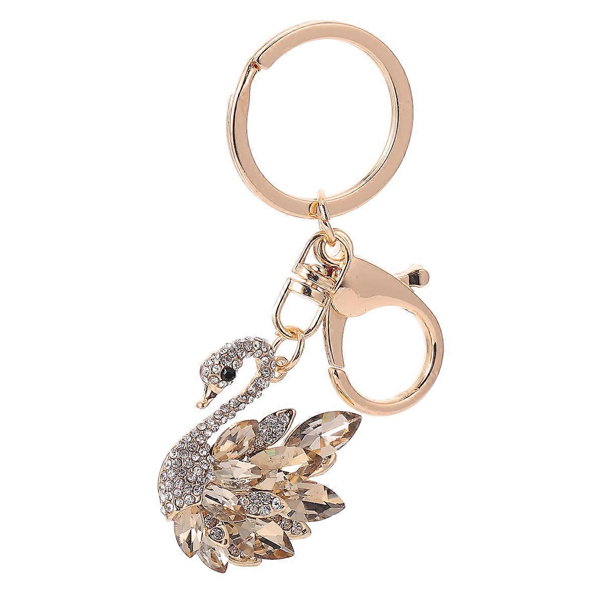 Swan Pendant Key Chain Elegant Bag Accessory Golden 4x3.5x0.5cm Plastic Metal 1Pack