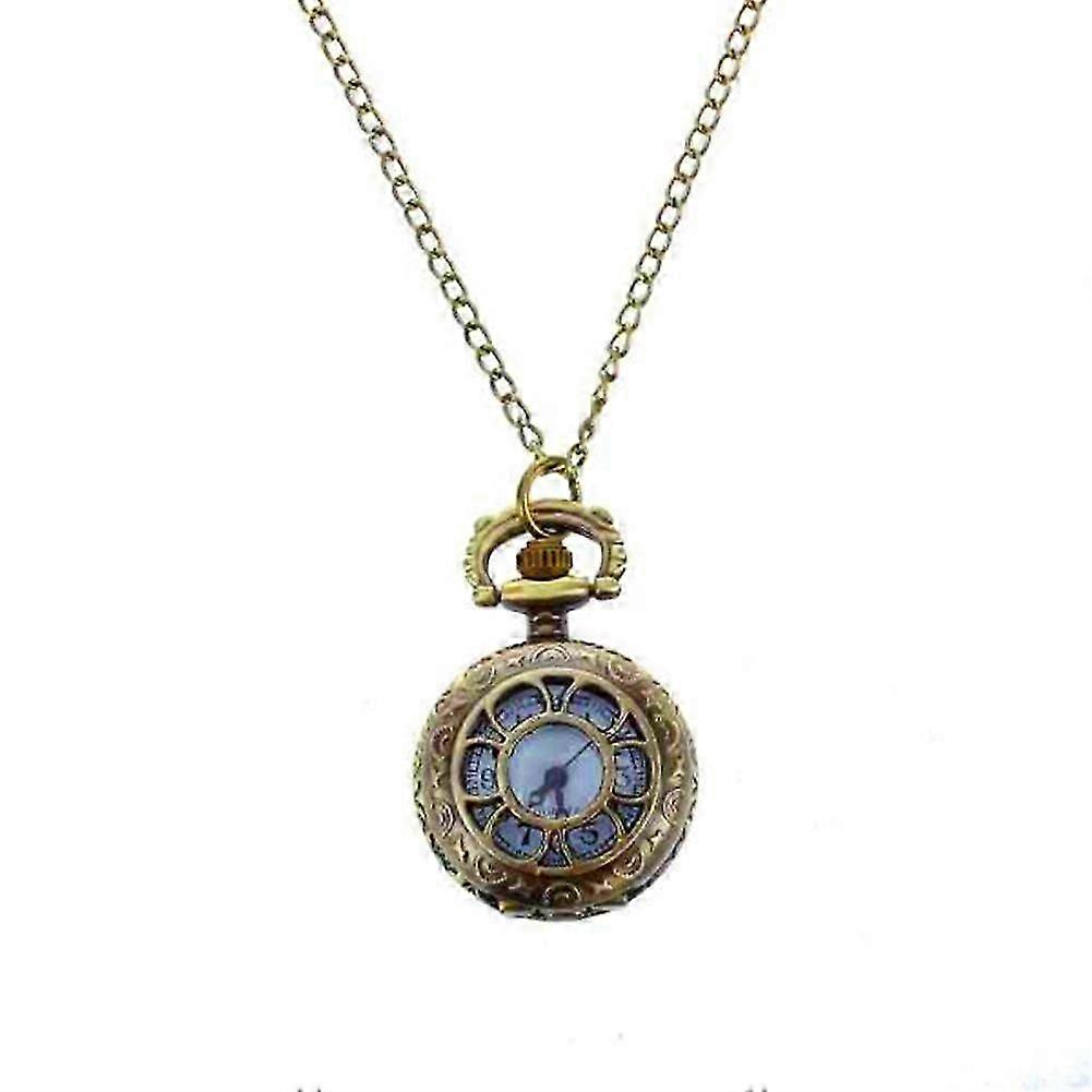 Bronze Tone Pocket Watch Floral Texture Hunter Case Pocket Watch for Lady Necklace Watch