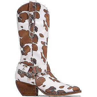 Cow Print Cowgirl Boots Block Chunky Heel Mid Calf