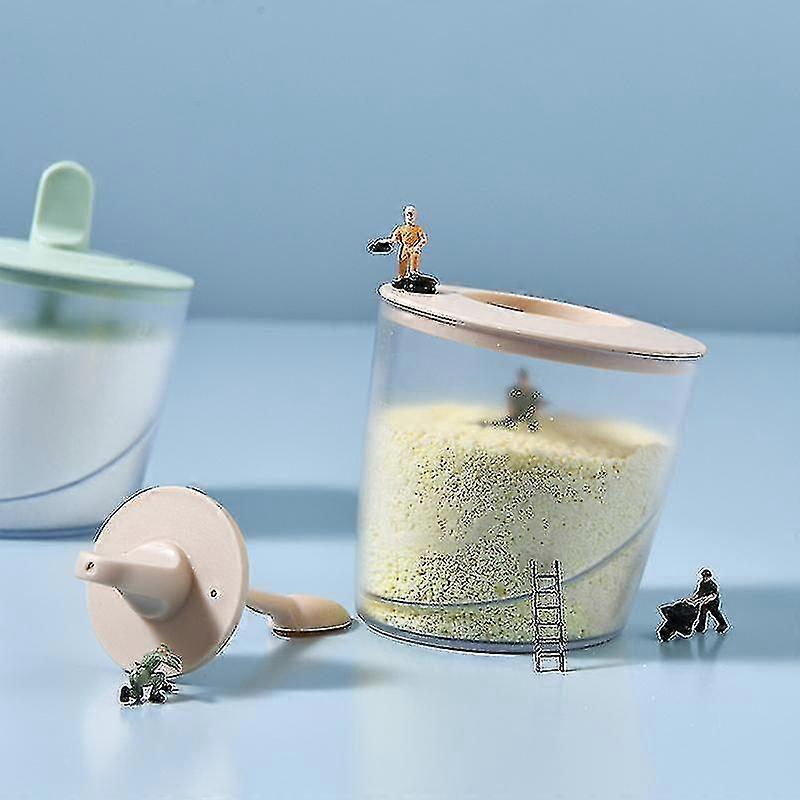 Plastic Seasoning Box Condiment Canister Kitchen Spice Rack Container With Lid Spoon Spice Sugar Bowl For Kitchen Sugar Bowl (2 Pieces. Green + Powder