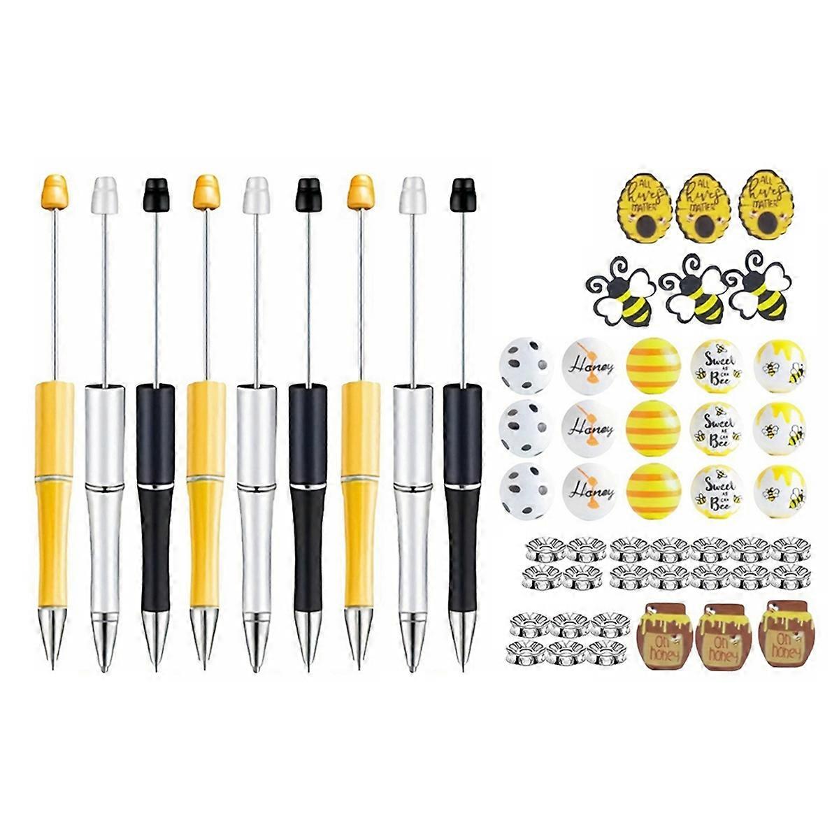Plastic Beadable Pens Print Bee Pens Spacer Beads DIY Ballpoint for Women Office Craft