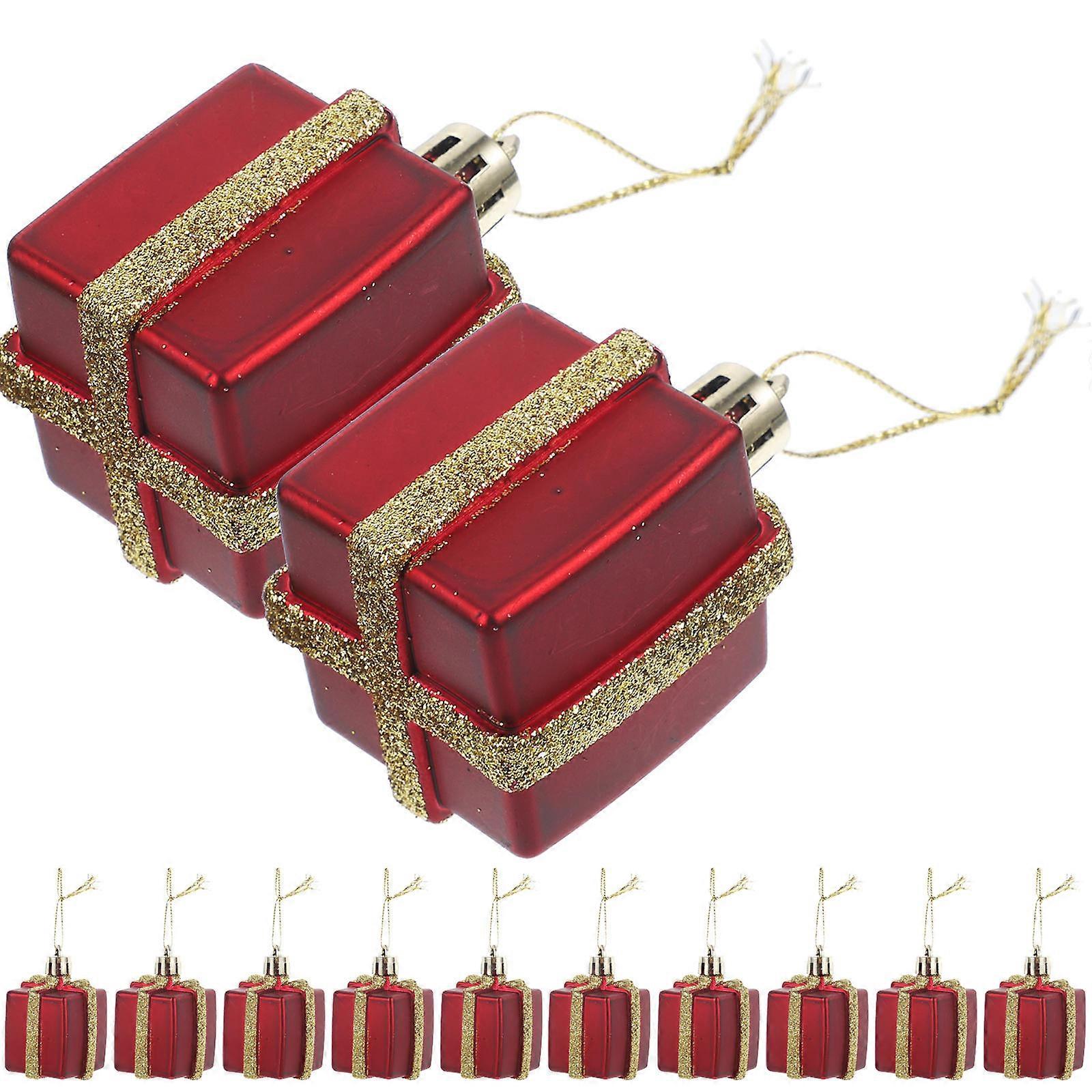 Plastic Miniature Tree Decorations Gift Box Shape Ornament For Fireplace Decoration Dark Red 12Pcs