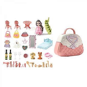 Plastic DIY Castle Villa in Handbag Carry-A-Home Set for Handbag Dollhouse Toy Kids Pretend Toy Girls Gifts