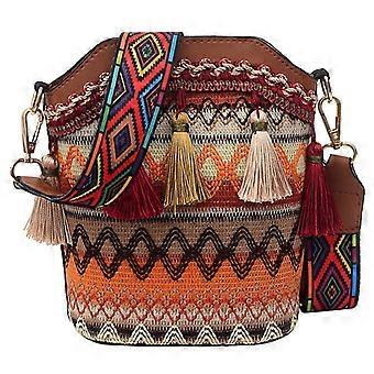 البوهيمية المرأة القش المنسوجة حقيبة رسول حقيبة دلو بني