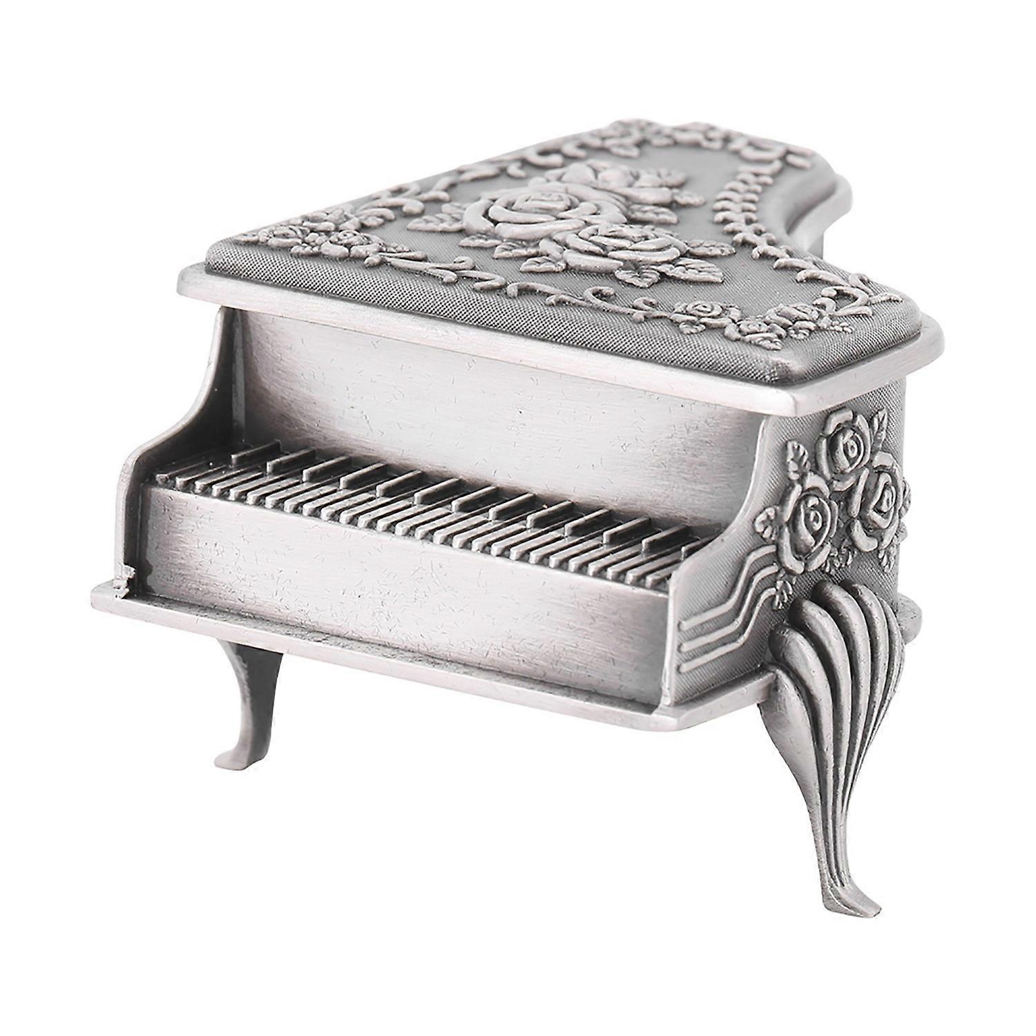 Piano Shaped Rose Flower Carved Zinc Alloy Jewelry Box Case Jewellery Storage