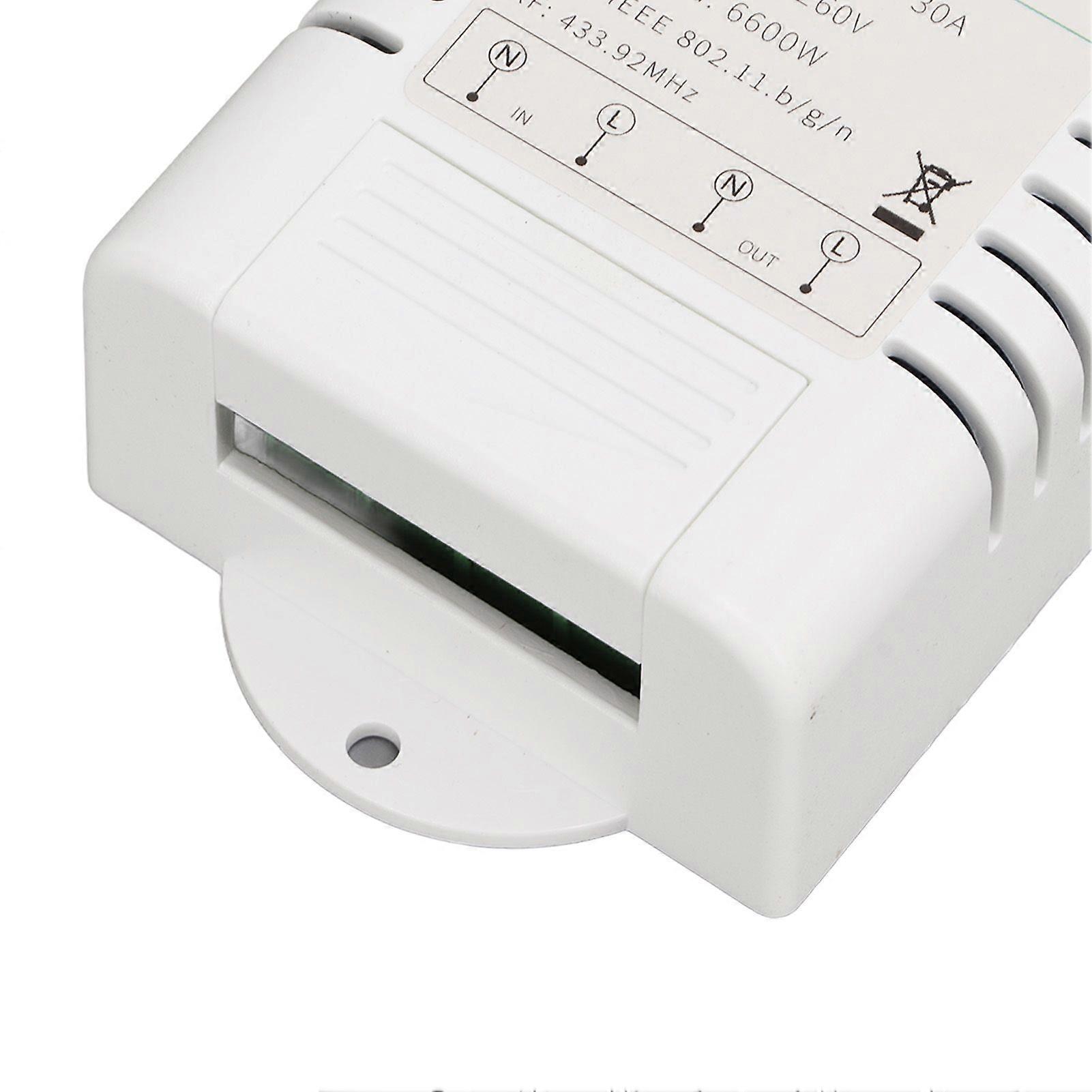 Feature:1. Real Time Feedback: The smart switch can feed back the current working status of the electrical appliance in real time and has excellent performance.2. Voice Control: Using sophisticated production technology, the smart switch supports voice control and can be remotely controlled by mobile phones.3. Intelligent Timing: This switch can be intelligently timed, even if the WIFI is interrupted, the set timed event will still proceed.4. Four Working Modes: This smart lock has four working modes: jog, self locking, interlocking, manual control, and has a long service life.5. High Quality Materials: Made of high quality ABS material, the smart switch is sturdy, durable and not easily damaged.Specification:Item Type: Smart SwitchMaterial: ABSModel: NoneInput Voltage: AC 85V to 260V 50/60HzOutput Voltage: AC 85V to 260V 50/60HzLoad Power: 6600WWIFI Frequency: IEEE 802. 11 b/g/nRemote Control Frequency: 433.92MHzReceiving Sensitivity: -105dbmCoding Method: Learning TypeWorking Mode: Jog, Self Locking, Interlocking, Manual ControlModulation Method: ASKUse App: for eWeLink.Package List:1 xSmart SwitchNote:1. Do not operate with electricity, turn off the power supply for operation, and use it after testing and confirming that it is correct.2. When the remote control voltage is low, please replace the battery in time (when the remote control battery voltage is low, the remote control distance will generally become shorter).3. When using wireless electronic products, pay attention to avoiding metal masks, large electronic devices, electromagnetic fields, etc., which have strong interference sources, and avoid the short distance between the remote control and the receiving device or the failure of normal operation.4. Do not use this electronic product abnormally. Abnormal use will reduce the performance and life of the product. In severe cases, it will damage the product and bring dangers to your safety.