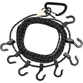 التخييم الحبل شماعات في الهواء الطلق خيمة التخييم حبل الغسيل مع 8 السنانير المحمولة قابل للتعديل ضد الرياح السفر الحبل (1 قطعة أسود)