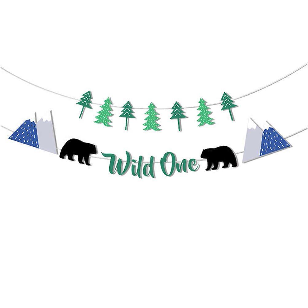 Camping Theme Cake Topper Decoration Set Baby Birthday Party Green Non-Woven Fabric 7Pcs