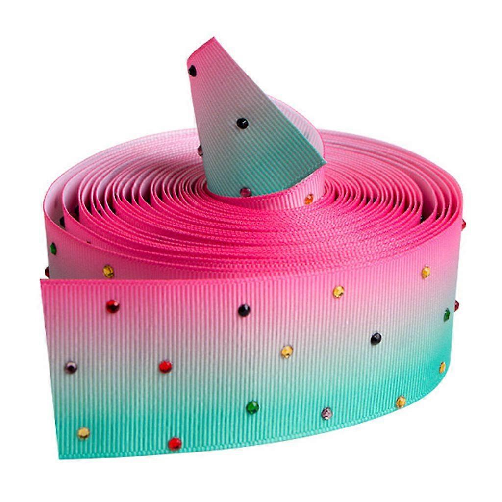 Gradient Rainbow Grosgrain Ribbons Shiny Mini Dot Rhinestones Beading Ribbon for DIY Hair Bows Gift Wrapping Party Decor