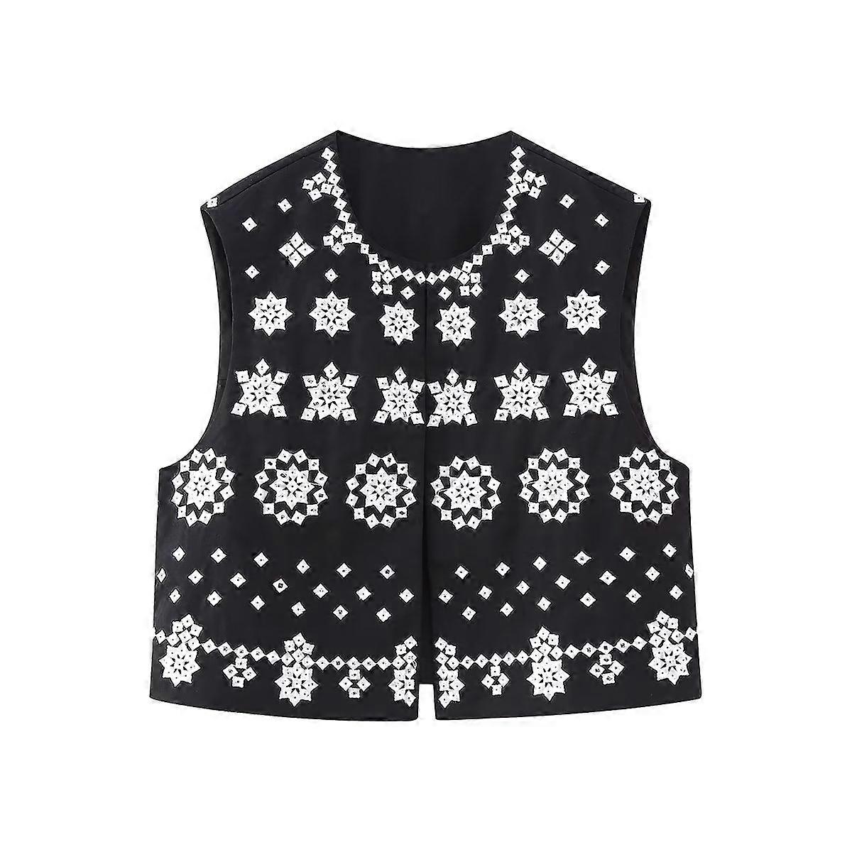 Sequin Embroidery Vest Women Fashion Black Vintage Sleeveless Waistcoat Chic Lady Female Clothing 2023 Summer New