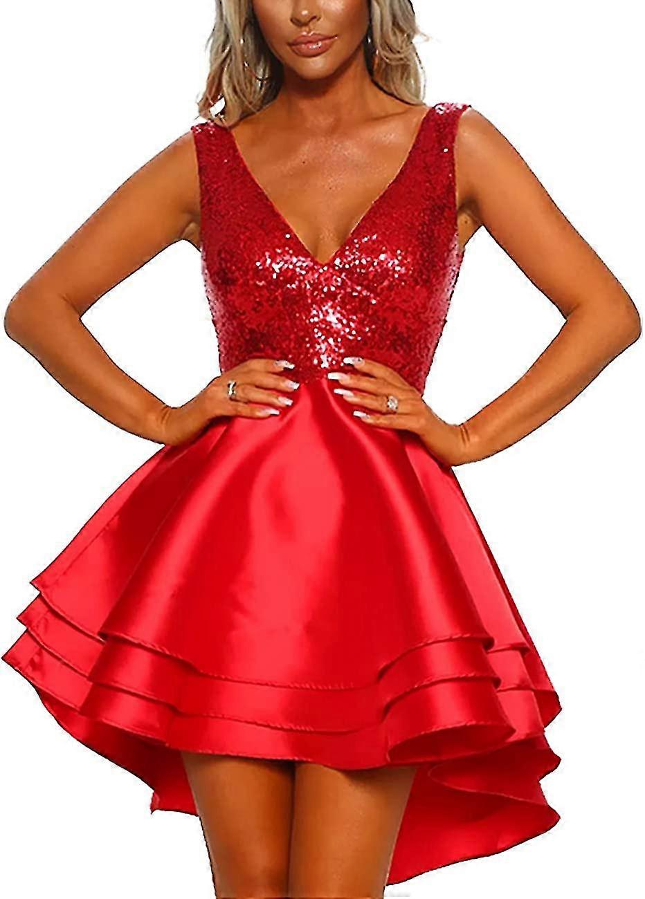 Sequin Glitter V Neck Skater Mini Club Cocktail Party Swing Dress
