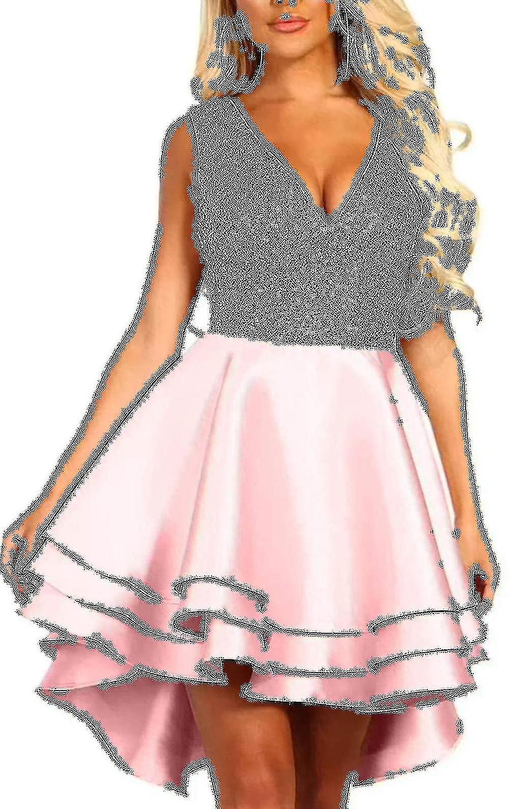 Sequin Glitter V Neck Skater Mini Club Cocktail Party Swing Dress