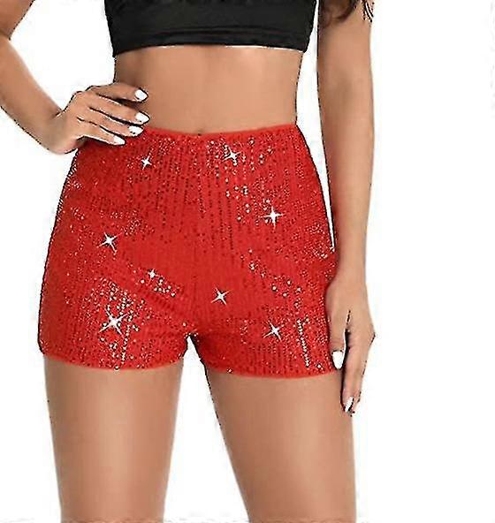 Women's Sequins High Elastic Waist Straight Leg Shorts Solid Glitter Party Shorts