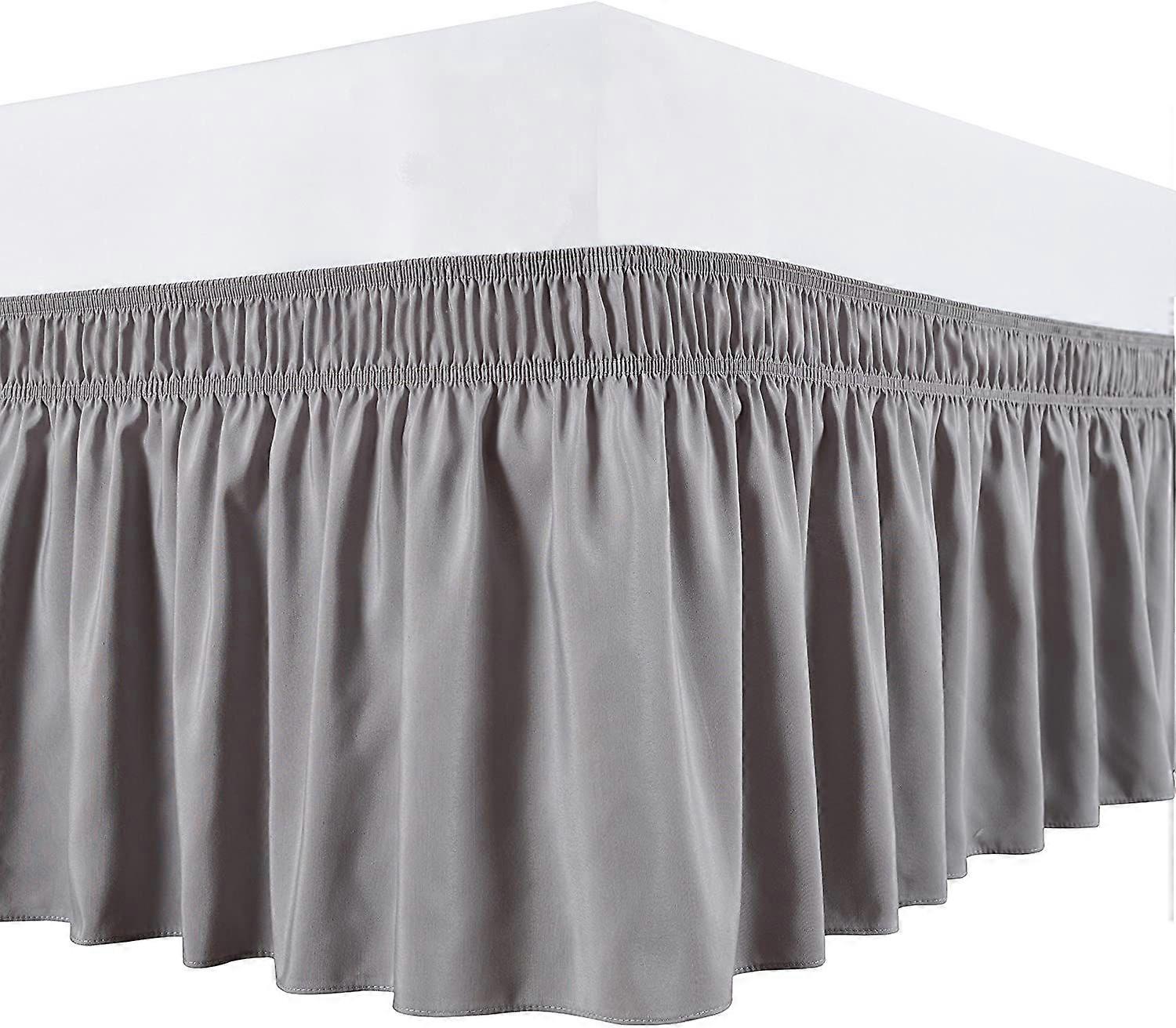 Wrap Around Bed Skirts with Adjustable Belts, Silver Gray for Twin and Twin XL Size Beds, 15 Inch Drop, Elastic Dust Ruffles, Luxurious Silky Fabric a